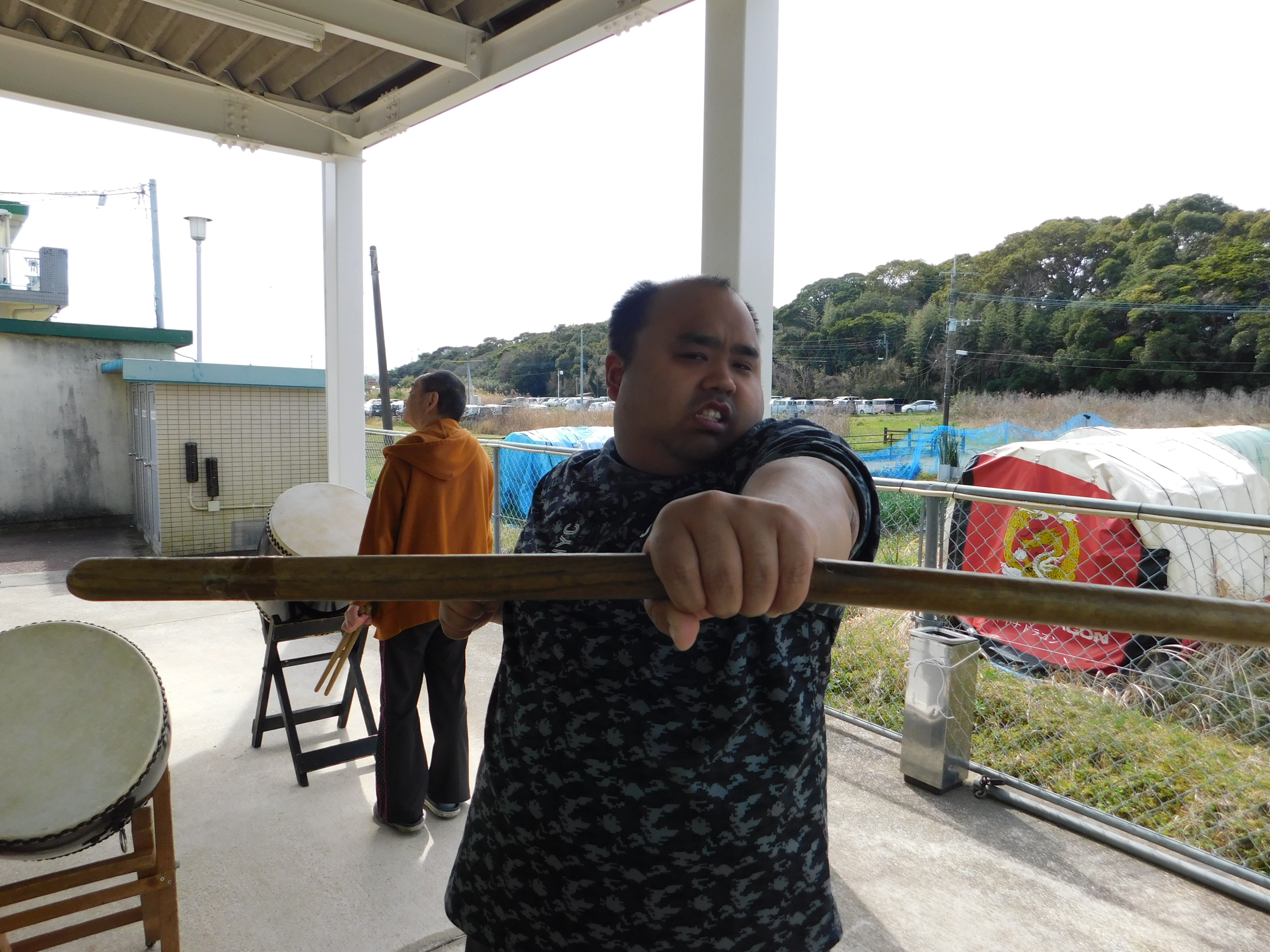 職員の指揮に合わせて、楽しそうに太鼓を叩いていました。