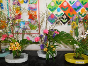 講師のご指導の下、季節の花を生けました。
