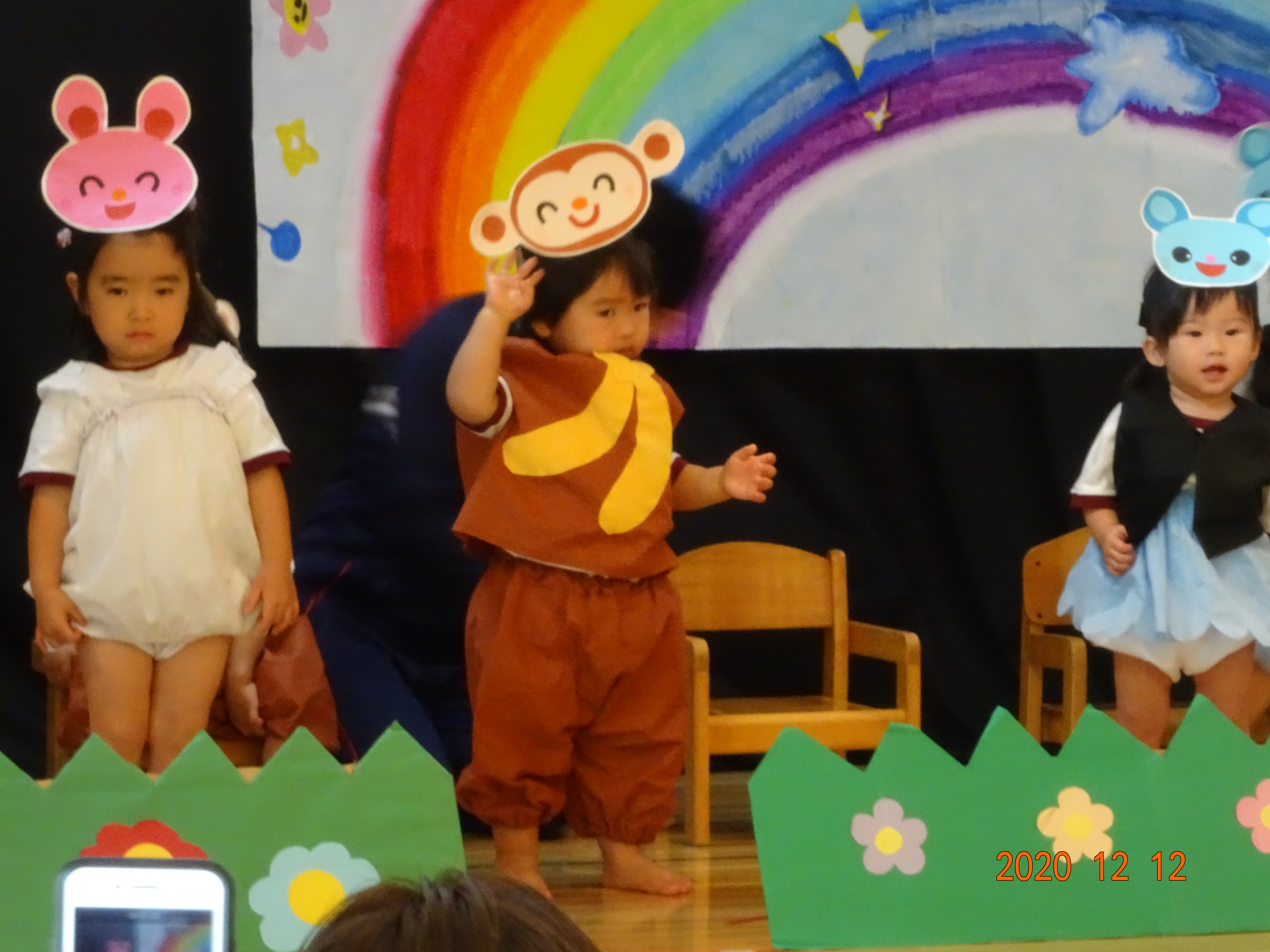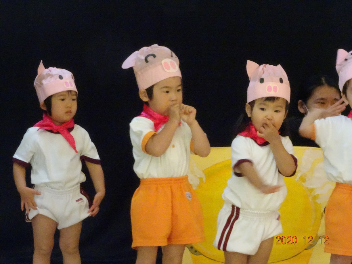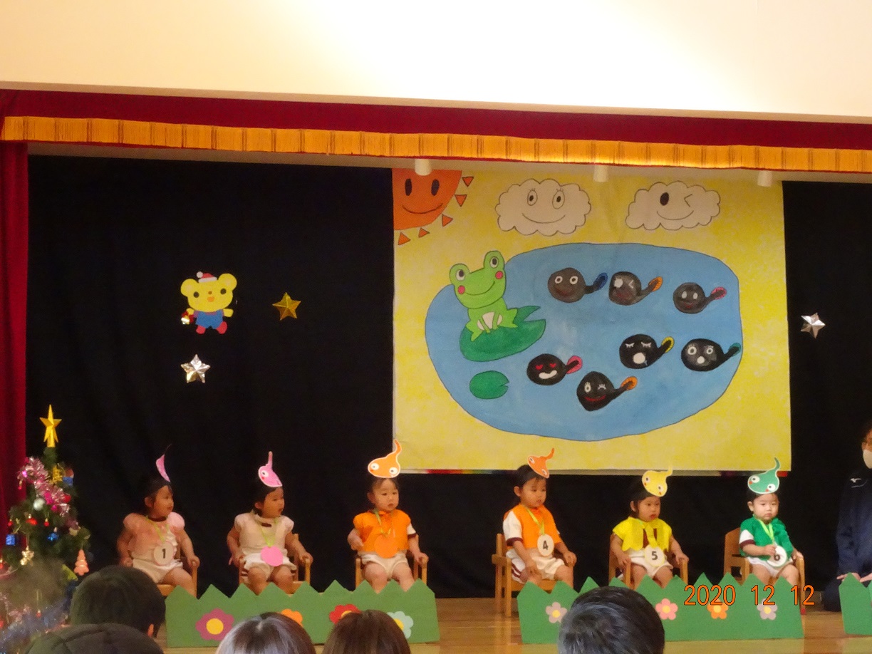 クリスマス発表会(未満児) 12月12日(土) 今年度の発表会は、新型コロナウイルス感染症のこともあり未満児クラス、以上児クラス 別々の日に開催することになりました。 今日は未満児クラス♬ とってもかわいい姿でその場にいるだけでもホッコリ(^^♪ また、クラスが上がるにつれ動きもしっかりして堂々とした姿をみせてくれました。