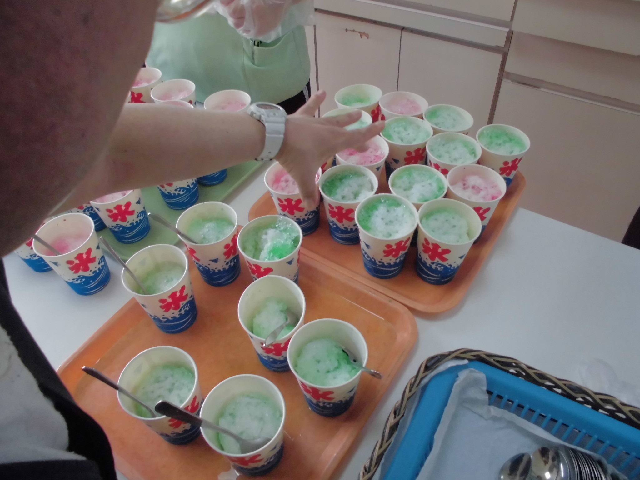 ♪かき氷パーティー♪ 毎日本当に暑いですね!!! 暑~い夏を乗り切るには やっぱり 『かき氷』 ですね♪ 本格的な機械で・・・・ まごころをいっぱい込めて 作りました♪ 美味しかったどうかは・・・・ 皆さんの “笑顔” で 伝わってきますね♪