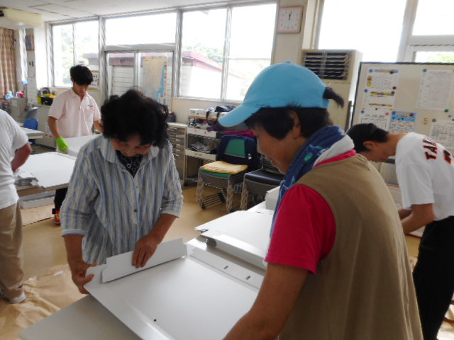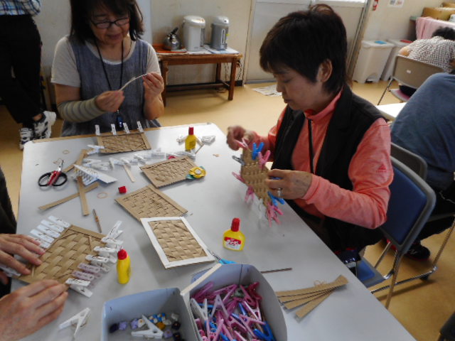 参観ウィーク 6月11日から15日までの5日間、参観ウィークが行われました。 多くの保護者の皆様に、日頃取り組んでいる活動に参加していただきました。 午前中は生産活動を行っており、この日は学生服の箱折り作業に取り組んでいただきました。 午後の活動。この日は一緒に、クラフト紙で写真立てを作りました。 クラブ活動にも参加していただき、ご利用者の皆様と楽しんでいただきました。