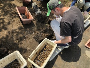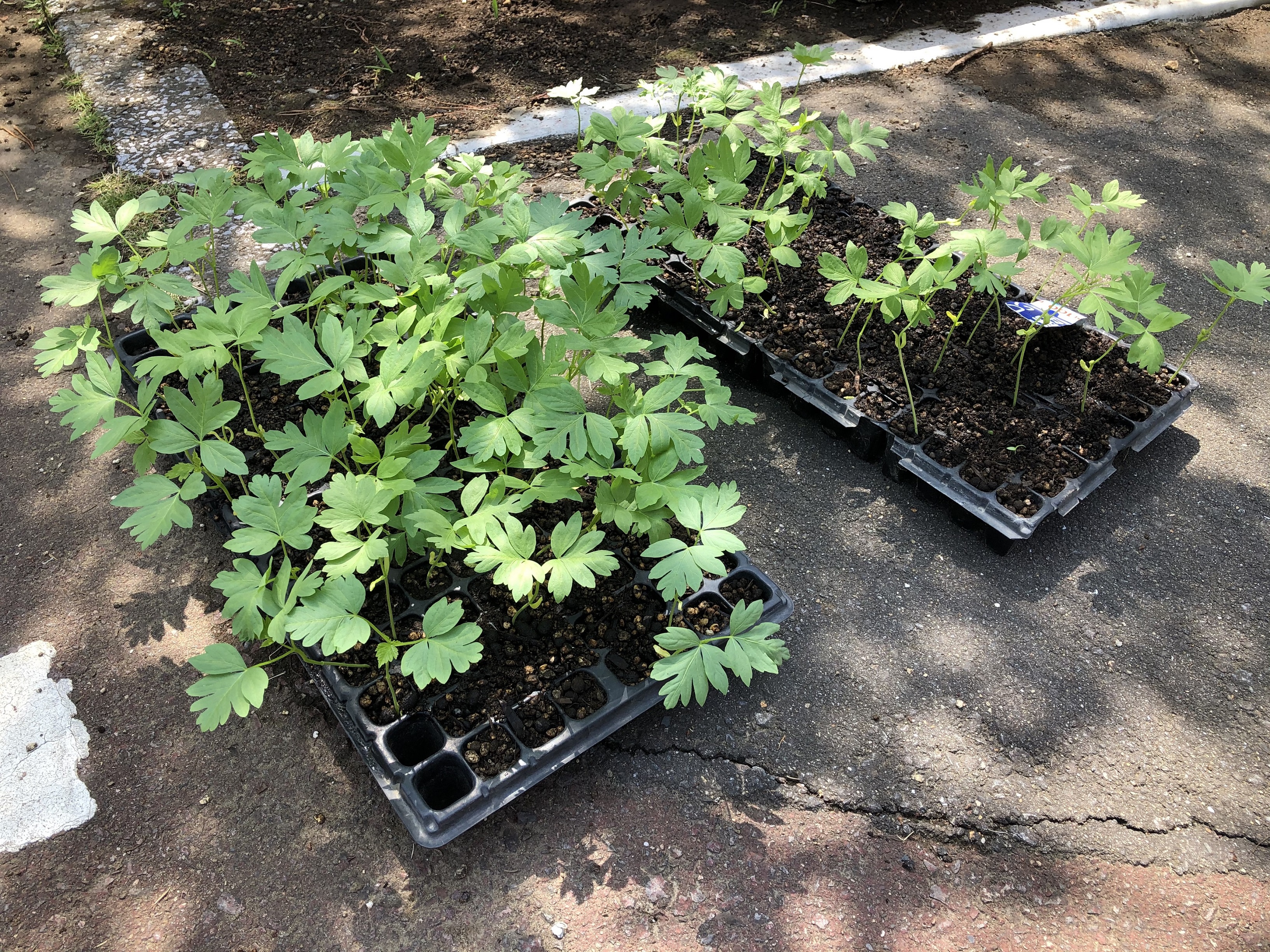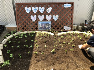 大きくなった苗を玄関先やプランターに植え替えるために、