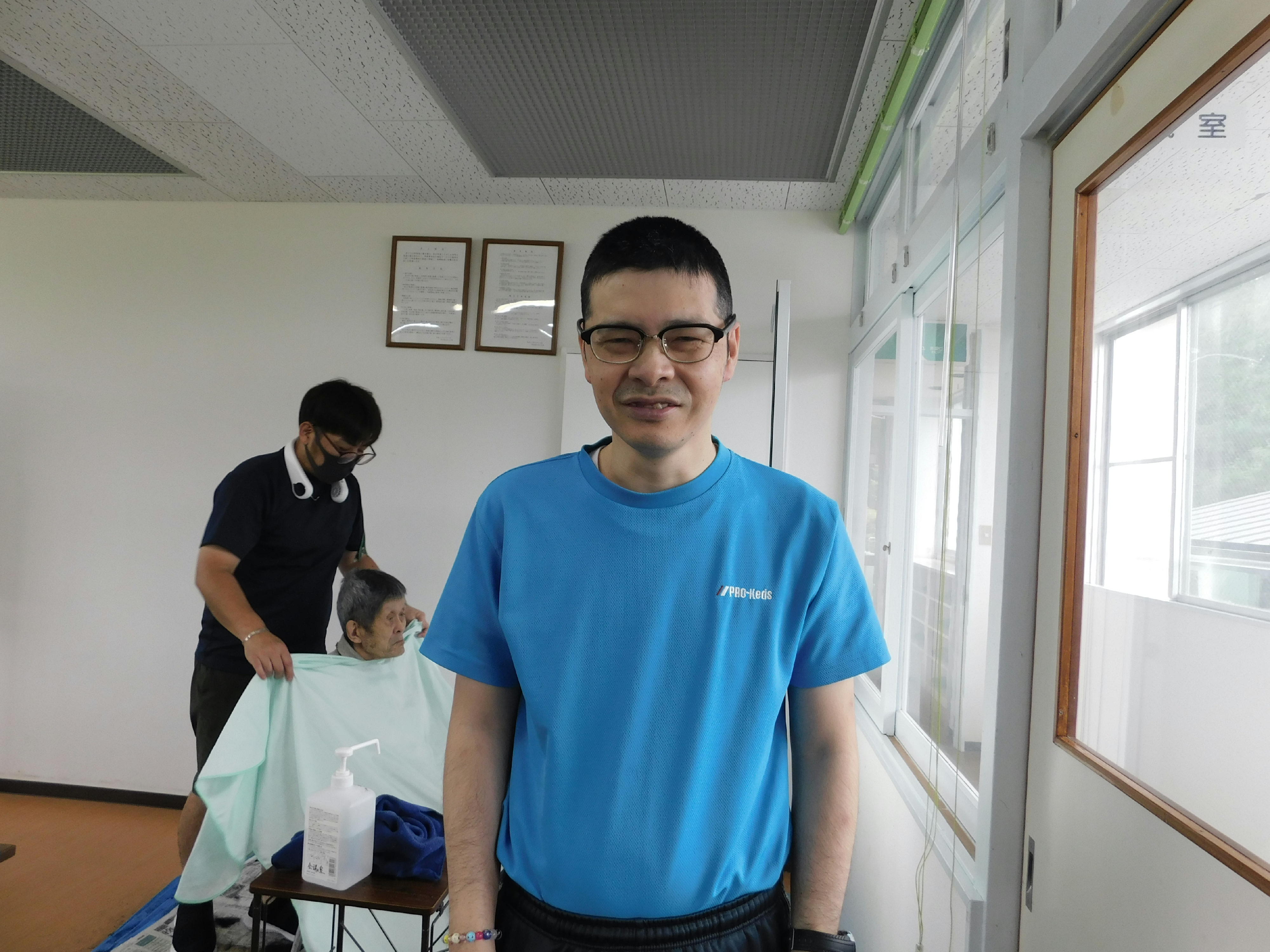 7月 散髪支援♪ 今月も、感染症対策のため、 施設内にて散髪支援を実施しました! 7月に入り、毎日暑くてじめじめした日々が続いていますので、 夏らしく「短めにお願いします!」という方がほとんどでした♪ とてもすっきりました♪お似合いです! 心もすっきり♪ カット後はご利用者も笑顔で過ごされていました♪ 今回も丁寧に散髪していただき、ありがとうございました。