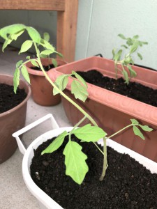 プランターで育てているミニトマトの苗が大きくなってきたので、