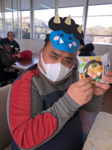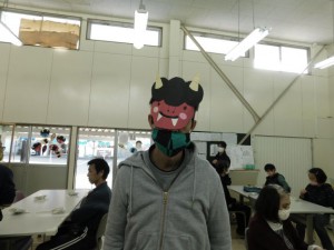 毎年恒例で、年男には鬼のお面を被って貰いました。優しい鬼です♡