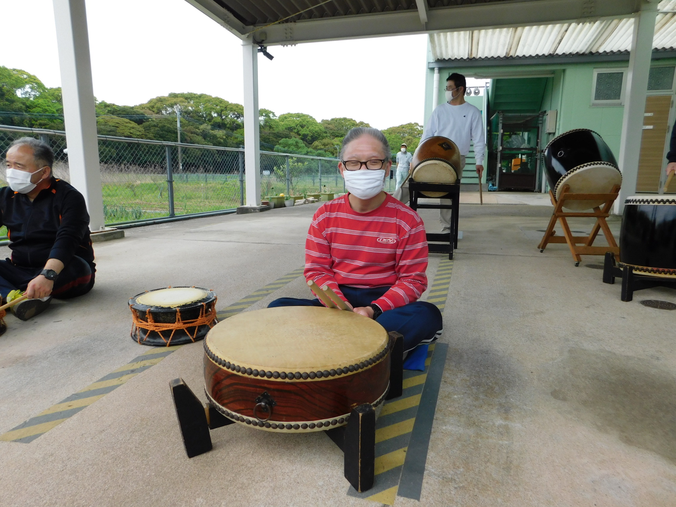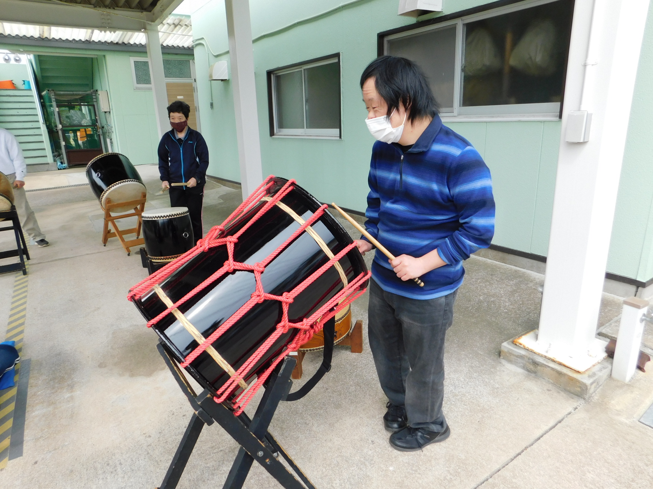 リズムに合わせながら、楽しく太鼓を叩いていました!