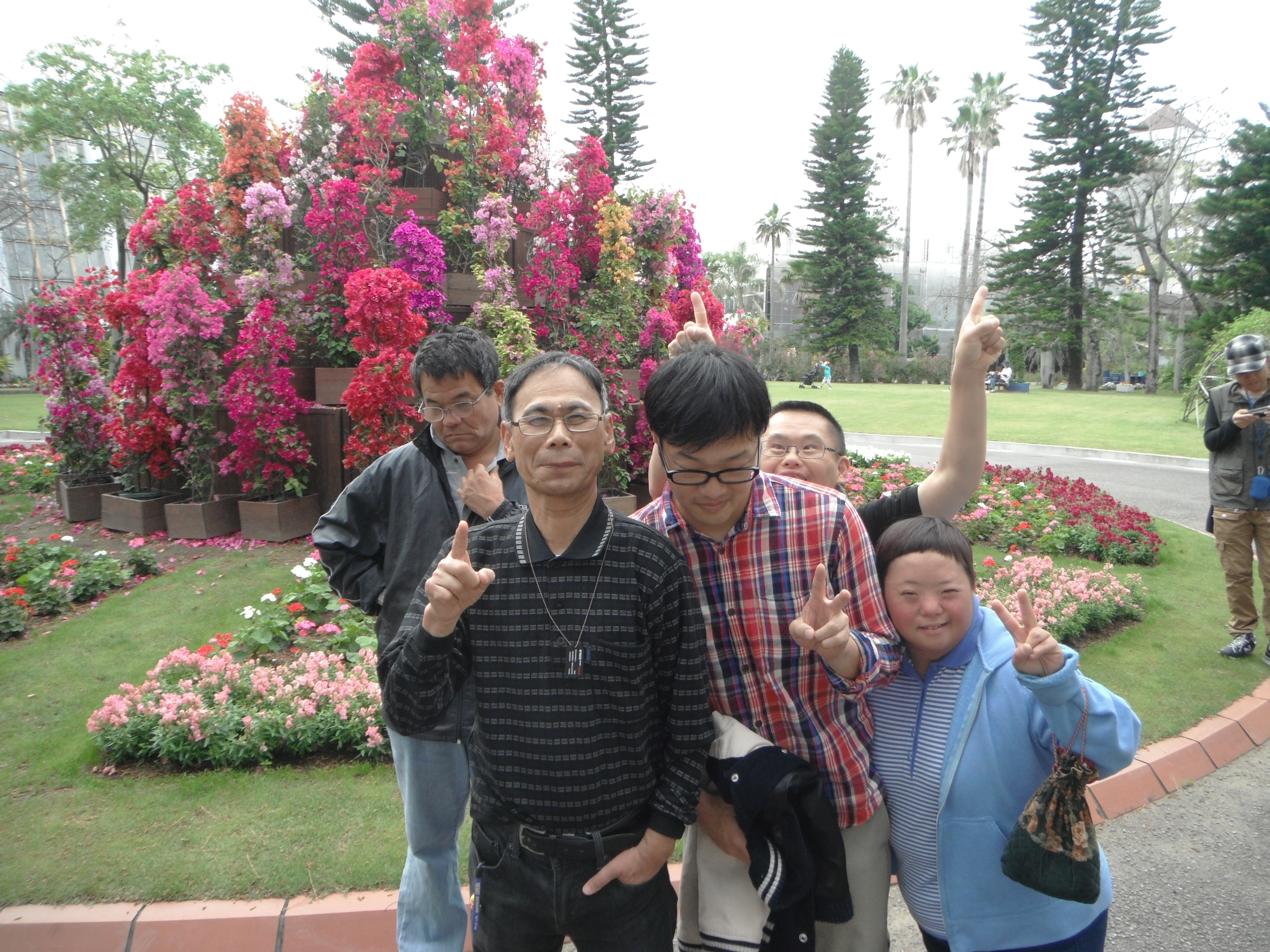 花旅みやざき 各班、宮崎の春を探しに、こどもの国(フラワーフェスタ)や平和台公園、青島亜熱帯植物園に出掛けました。天候に恵まれず、雨天での実施になった班もありましたが、帰園後にはご利用者からたくさんの笑顔が見られ、良い気分転換になりました。 バスに乗って、出発します♪ 花を見ながら、ウォーキングをしたり、仲良く写真を撮りました。 雨天組は、室内で埴輪を鑑賞したり、ソフトクリームを食べました。花もいいけど・・・アイスもいい♪ 記念に、「はい、チーズ♪いえーい♪」