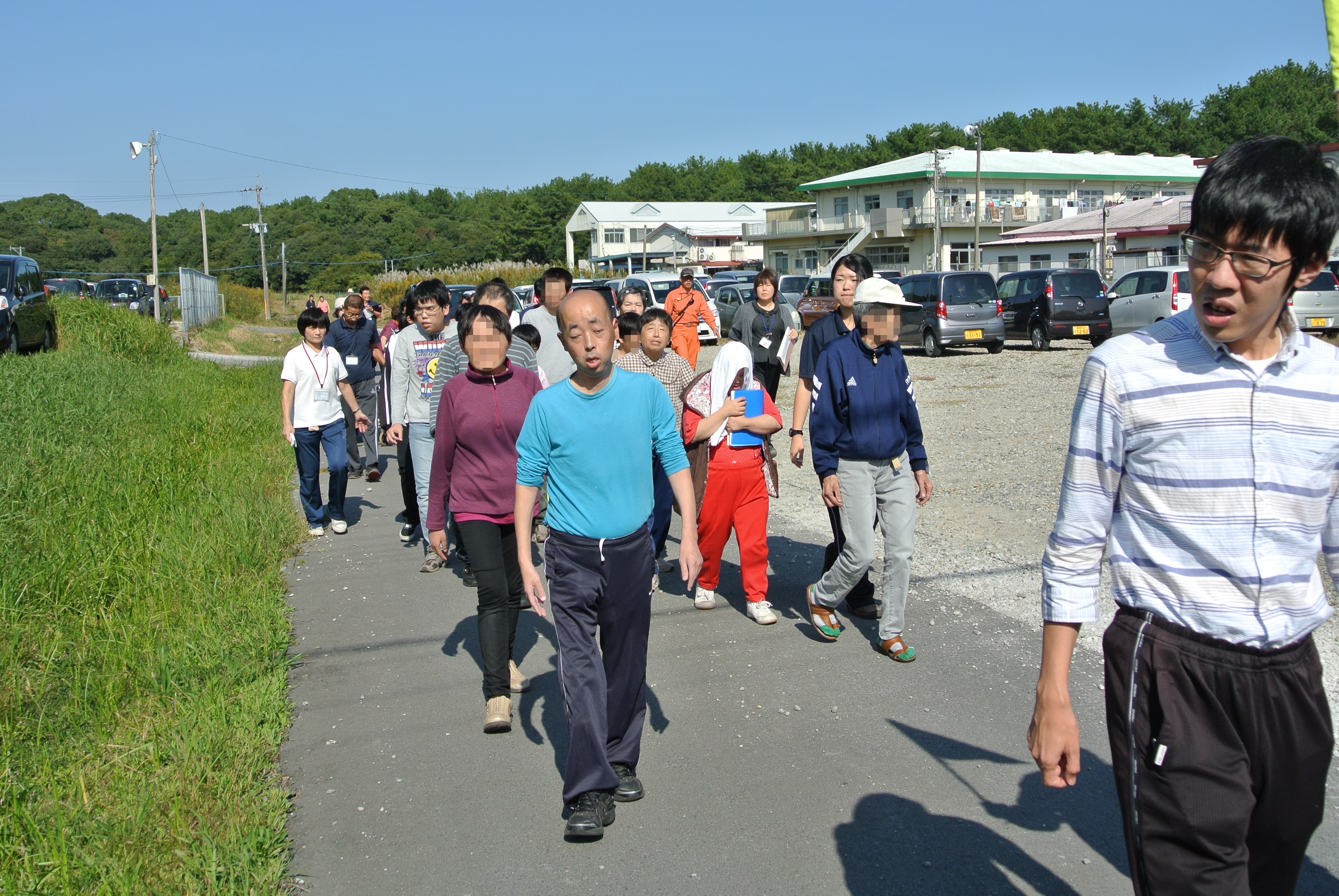 2次避難場所に到着しました。点呼や怪我の有無などの確認を行っています。ご利用者の方々も、安全に避難することが出来ていました。