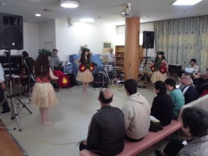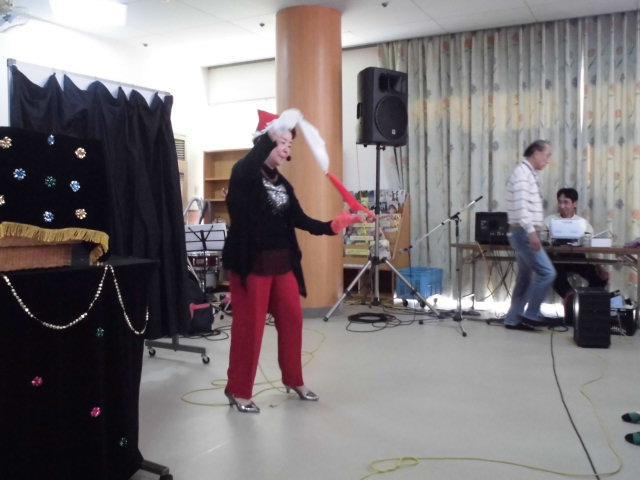 芸能歌謡会 12月13日、今年も「宮崎県ボランティア芸能歌謡会」の皆様にお越しいただき、演芸会が開催されました!! 手品、ダンス、フラダンスや素敵な歌など、たくさんの芸を披露していただきました♪☆ 手品では、色々な物が出てきて、すごくびっくりしました!! 考えてもタネが分かりません・・・。 手品でサンタさんになったご利用者も… 最後は、音楽と歌に合わせてみんなで踊りました♪*。