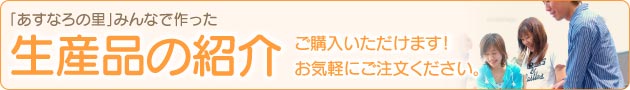 | 返品について | ご購入後、商品の不良にお気づきになりましたら、あすなろの里へご連絡ください。良品と交換させていただきます。
