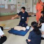 9月4日(木)、宮崎市北消防署東分署の方に講師を依頼し、「宮崎市消防出前防災講座」を行ってもらいました。近年、ご利用者の方の高齢化も進み、怪我等が起こるケースが多くなることも考えられるため、緊急時に対応できるようなスキルを身に付け、「救える命を救うために出来ること」等を学ぶことを目的としています。