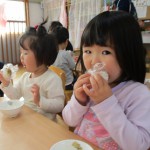 その日の給食に出してもらい、みんな喜んで食べていましたよ!食べ方も上手でした。