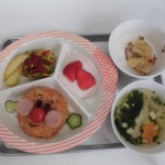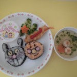 子ども達が喜ぶキャラクターを入れて美味しい給食を作ってくれました。毎月楽しみにしている誕生会。お祝いの後はごちそう(*^_^*)モリモリと食べる姿や「○○が入っている~」「○○おいしい!」など言葉もたくさん。山盛りのごちそうに目をキラキラさせて、嬉しそうな子ども達でした
