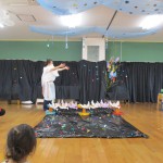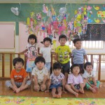 誕生者をみんなでお祝いして、そのあとは七夕の由来を簡単にペープサートで見て、みんなで天の川を作りました。キラキラお星さまの色紙をたくさん貼って、素敵な天の川が出来上がりました!