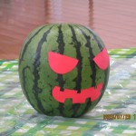 オバケの顔に変身した大きなスイカをみんなで叩いてスイカ割りに挑戦!