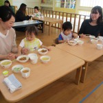 その後、試食会で園の給食を一緒に「いただきまーす!」栄養満点で優しい味の美味しい給食、そしてモリモリと食べる子どもたちを見て嬉しそうな保護者の方々でした。