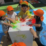 他にも絵の具での色水遊びや泥んこ遊びなどのびのびと遊び、暑い夏を楽しむことができました!