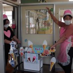 コーンに入れてもらいニコニコで受け取ったら、口や鼻につけながらも上手にペロペロと食べることができ、大満足の子ども達でした!!