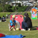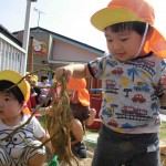 数日前に保育園の畑でお芋を掘ったように、子ども達は「うんとこしょ!どっこいしょ!」と掛け声をかけながら、楽しそうに芋ほりの出し物を体験していましたよ。