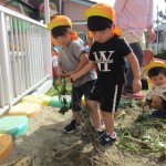 芋ほりをしました。保育園の小さな畑ですが、沢山の収穫がありました!