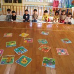 お楽しみ会では、伝統遊びのコマ回しや羽根つき、かるたを体験して、みんなで先生たちと一緒にワイワイ…「できた~」「まわった~」「みつけた~」「お~!」とはずんだ声が飛び交ってましたよ!!