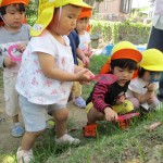 収穫ができそうなので、1歳児さんと0歳児さんも少しだけお手伝いをさせてもらいましたよ~。
