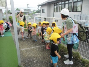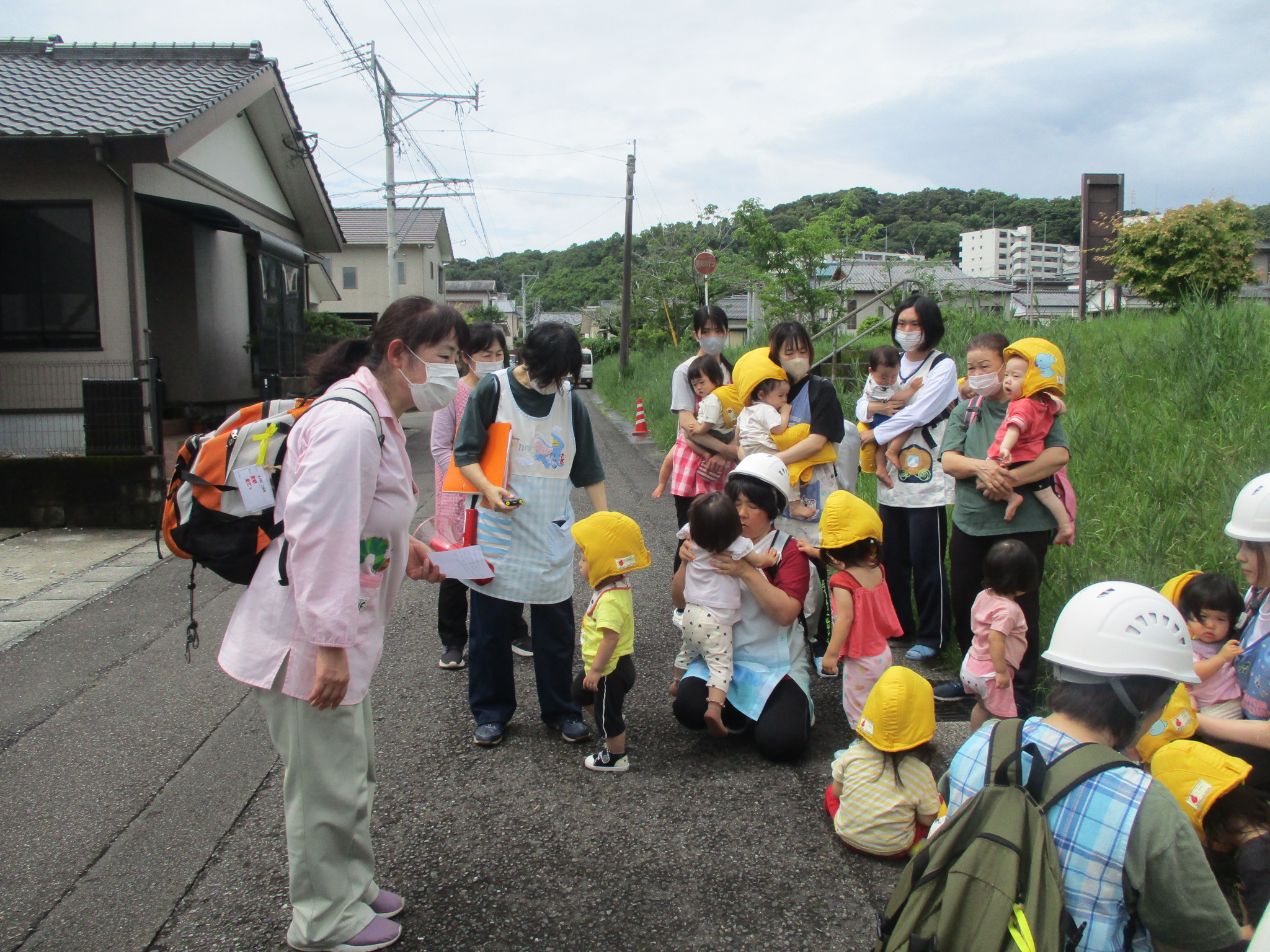 5月避難訓練 今月は、『近火想定』で避難訓練を行いました。 拡声器のサイレンが鳴りましたが、0歳児のもみじ組さんも泣くことなく保育士におんぶをされたり 抱っこをしてもらって避難できました。 今回の訓練で反省が出たことは、しっかり次回に活かしていきたいと思います!