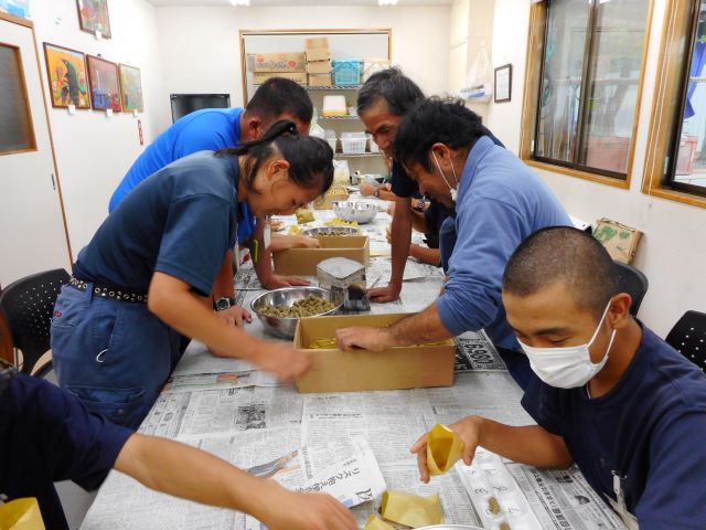 餌の袋詰め 再開!! 7月10日より動物園の売り餌が再開するにあたって、餌の袋詰め作業が再開しました! 新型コロナウイルスの影響でしばらくありませんでしたが、皆さん作業手順を忘れることなく作業に取り組まれていました。皆さん笑顔で作業に取り組まれており、今後も続いていくと良いなあ~と思いました。