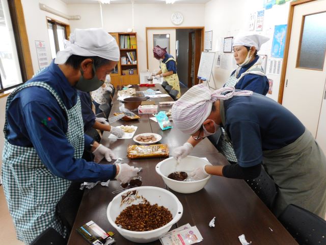 ここは女性の力を借りねば・・・と言うことで、女性ご利用者と一緒にバレンタインチョコづくりをしました。 ;-)