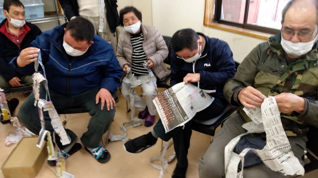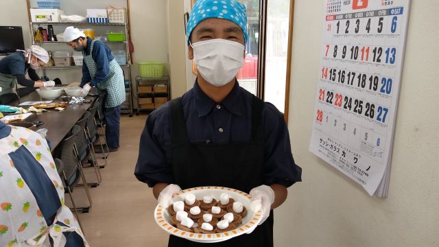 初めて作るというご利用者と職員。簡単に❓とはいきませんでしたが、力を合わせ何とか完成。