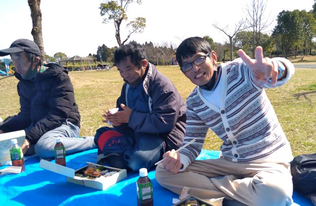 暖かくなったこの日、レクリエーションで萩の台公園に行ってきました。皆さん何をして過ごすのか見ていると、各々遊具遊びをしたり、散策したりと、楽しんで過ごされていました。