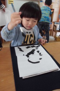 書初めにも挑戦しましたよ。しっかりと筆をもって。さぁ何を書こうかな・・・。
