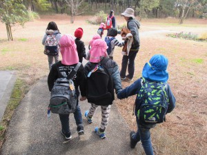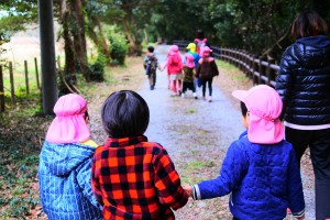 お散歩:手を繋いで歩くことが苦手だった子ども達が、3月になるとお友だちと手を繋いで歩く姿が多くみられるようになりました。お友だちと手を繋いで歩くのは、大人と違った楽しみがありますね。
