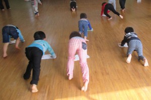 雑巾がけ:教室の短い距離から始めた4月、今では広い部屋でも端から端までがんばれるようになりました。