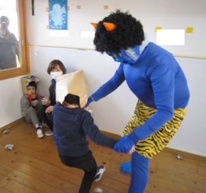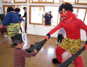 2月といえば、節分。わかば園にも赤鬼、青鬼がやってきました。
