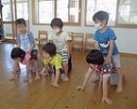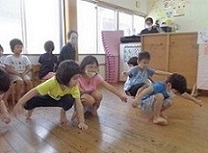 わかば園では、子ども達の実態に合わせたアレンジをして取り組んでいます。4月当初に比べると、2人組で行う動きも少しずつ上手になってきました。