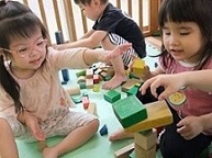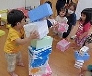 大きな積み木や小さな積み木。お友だちと順番に乗せて遊ぶのも上手になってきました。