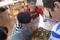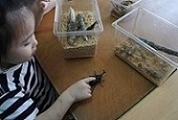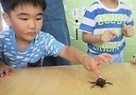 興味を持って覗き込む子、恐る恐る触る子、遠くから見ている子、積極的に触る子と様々な姿の子どもたち。初めはドキドキしていた子も、少しずつ慣れているようでした。また来年も遊ぼうね~!!