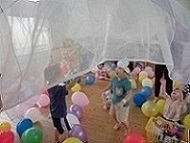 部屋中にたくさんの風船がい~っぱい。割れないかな・・・とドキドキする子も。たくさんの風船を見てワクワクしている顔を見せる子も。たくさんの風船は子どもも大人も楽しい空間でした。