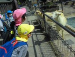 「ふれあいコーナー」では、ドキドキしながらも動物に触ったり、エサをあげたりする体験をしました。1回触れるとその後は大丈夫!!という子、こわいよ~とドキドキする子、いろんな子ども達の表情が見られました。