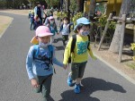 園内を移動する際は、お友だちや先生と手を繋いで歩きました。