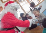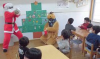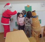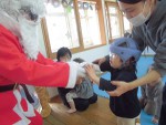 サンタさんとトナカイの登場に、ワクワクする子、ドキドキする子等、様々な子ども達。