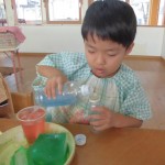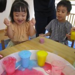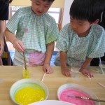 色水遊び、泡遊び、粘土遊び等は、子ども達が好きな遊びです。