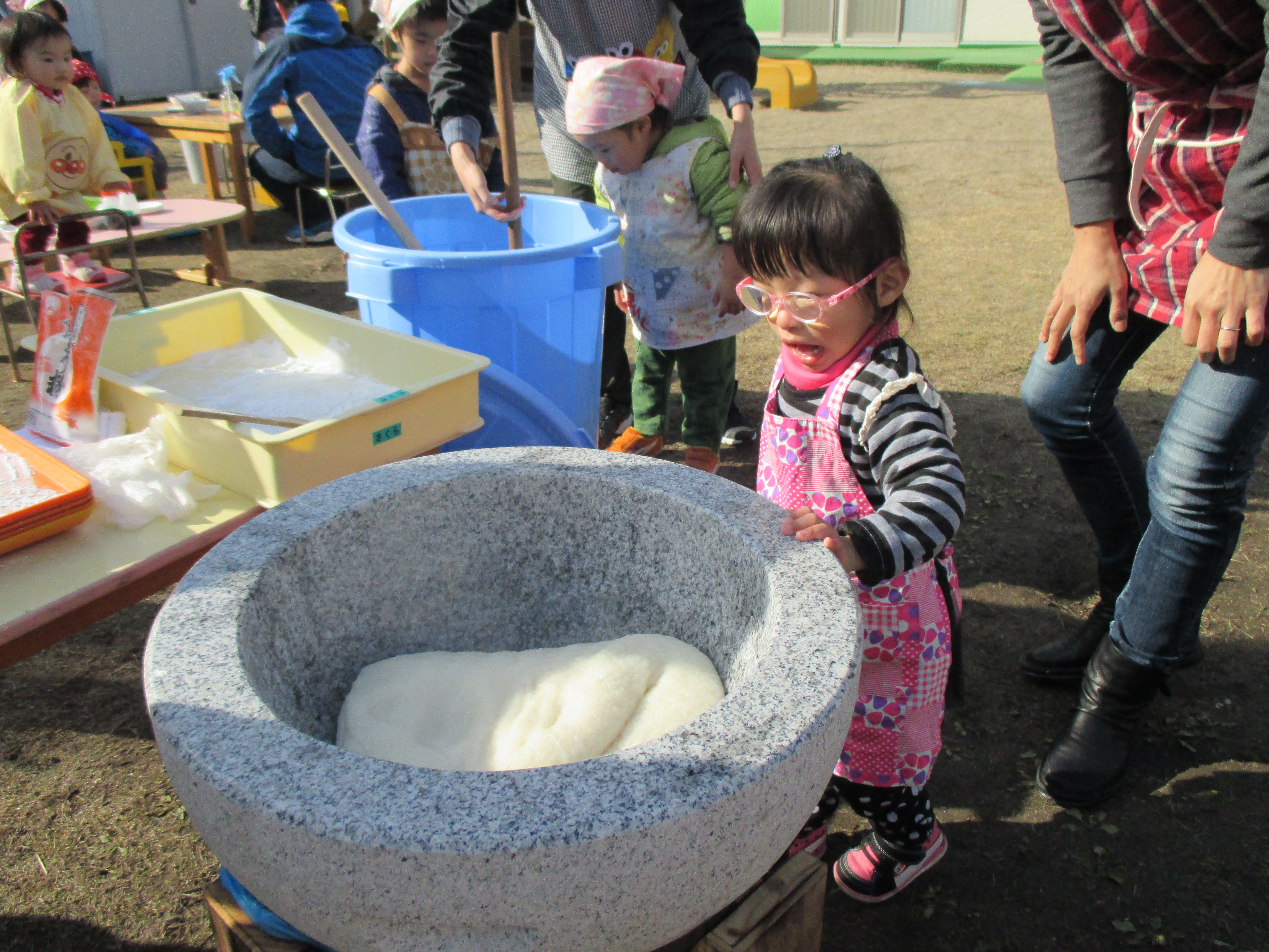 たくさんの保護者の方に参加していただき、とっても賑やかな餅つき大会となりました。