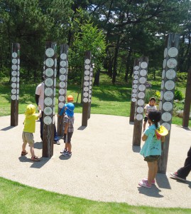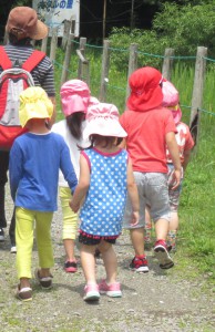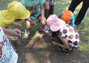 活動の様子☆いろいろ ~園外保育~ 天気の良い日には、近くの公園や噴水広場へお散歩にでかける日もあります。 園庭では発見できなかった虫を見つけたり、園庭にはない遊具で遊んだりと、園外ならではの楽しみがたくさんあります。