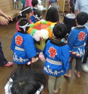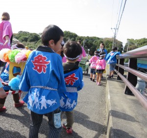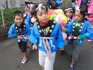 おみこしわっしょい♪ 11月11日(水)は、おまつりごっこを行いました。 子ども達がはっぴを着て、お御輿やお賽銭箱を持って準備万端!! わかば園を出発し、「わっしょい!わっしょい!」の元気な子ども達の声が響き渡ります。 「長生園」「あすなろの里」「阿波岐原通所センター」の3施設へ、伺わせていただきました。 それぞれの場所で、ダンスを披露したり、玉入れを一緒にしたりと、楽しい時間を一緒に過ごしました。 声をかけていただいたり、お賽銭を入れていただいたり、ご協力いただいた皆様、ありがとうございました。