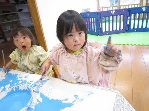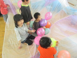 お友だちと一緒に、風船やシャボン玉、絵の具あそび、おままごとあそびをしたり・・・・