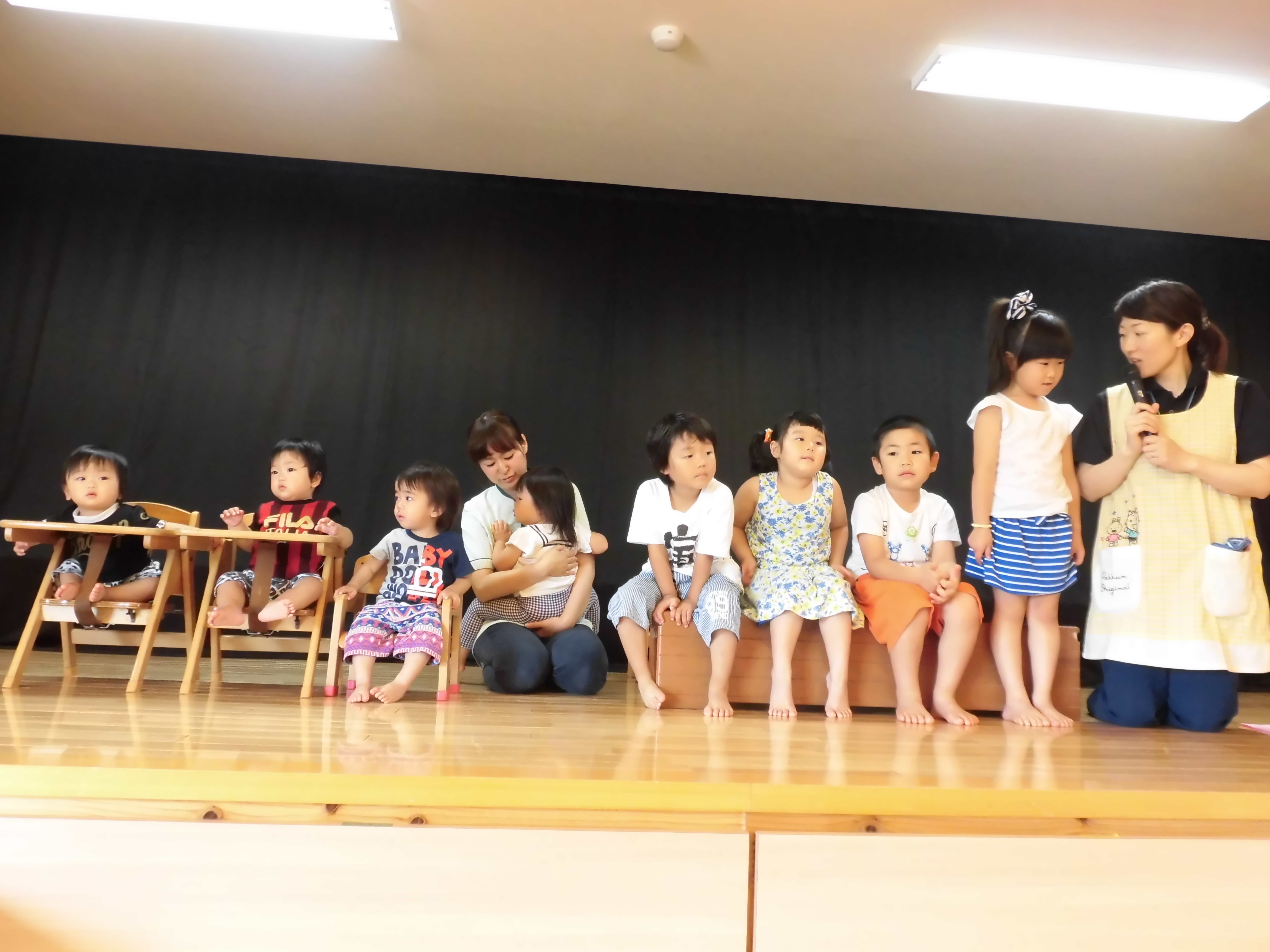 6月の誕生会では、季節の歌を歌ったり保育士による手品を見て楽しみました。