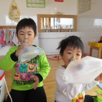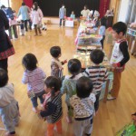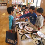 好きな物を買った後は各クラスで買ったものを見せ合ったり、並べてごっこ遊びを楽しんだりして遊びました。子ども同士の関わりや会話が弾み楽しい1日になりました。