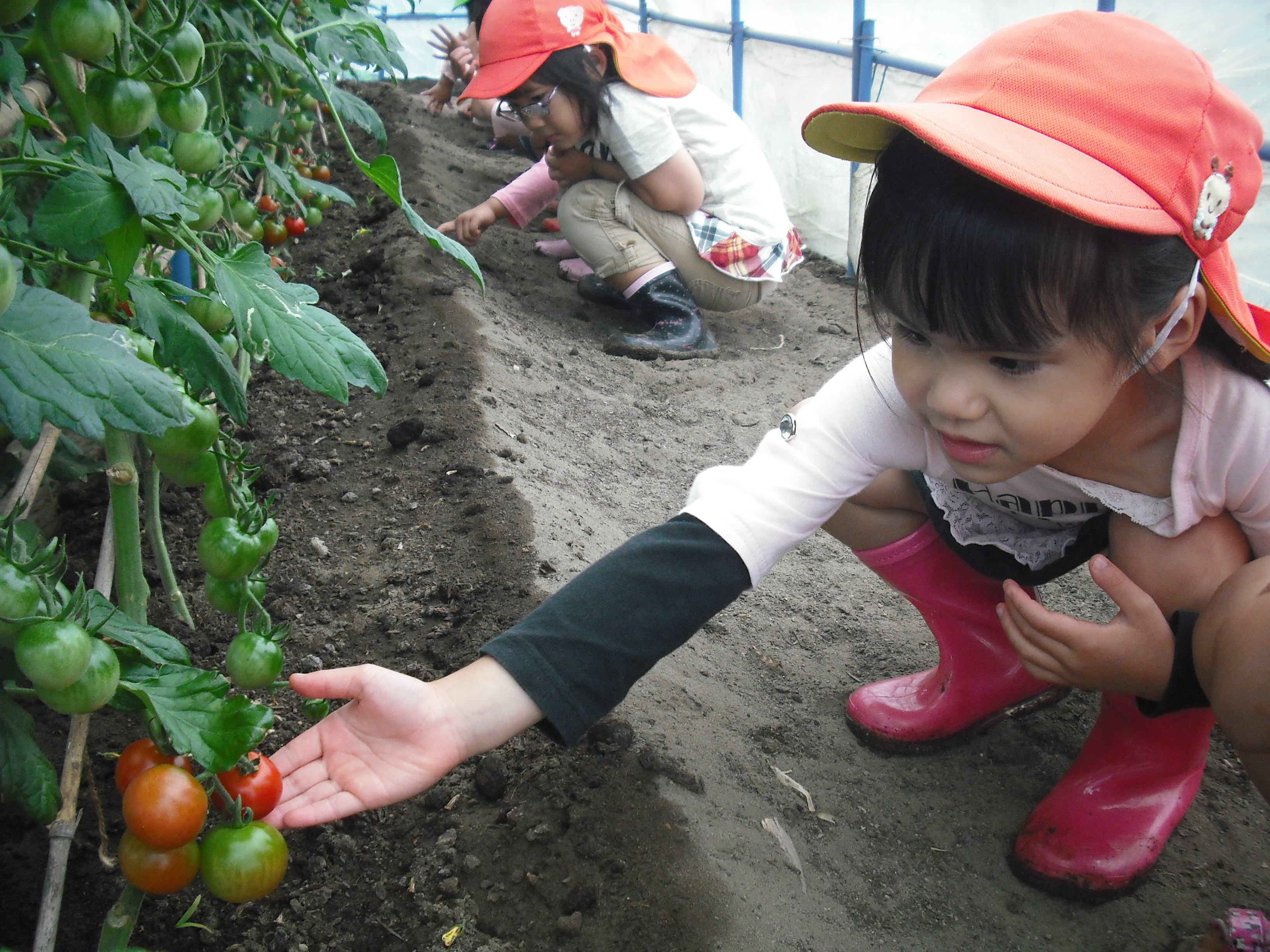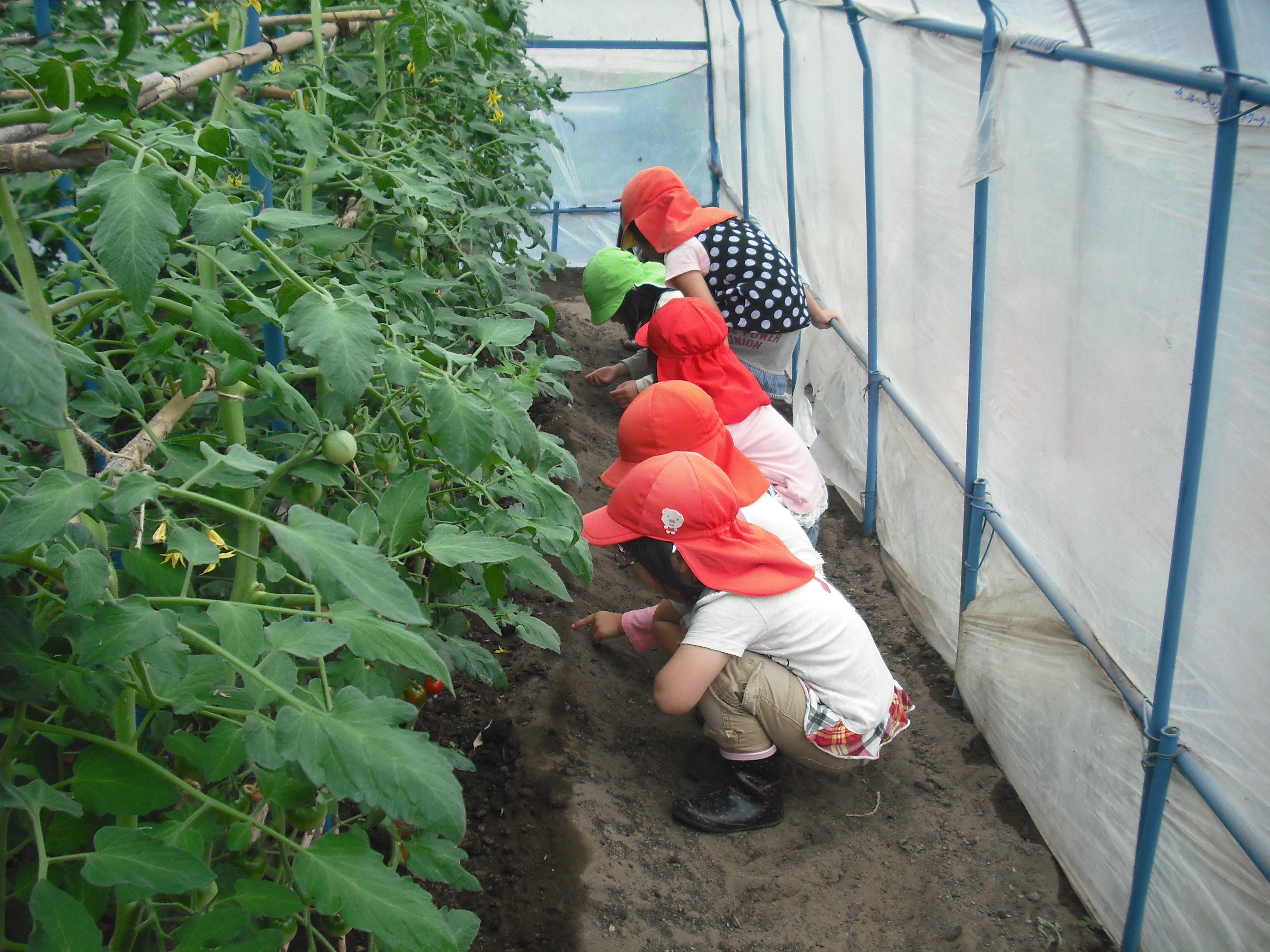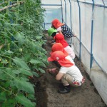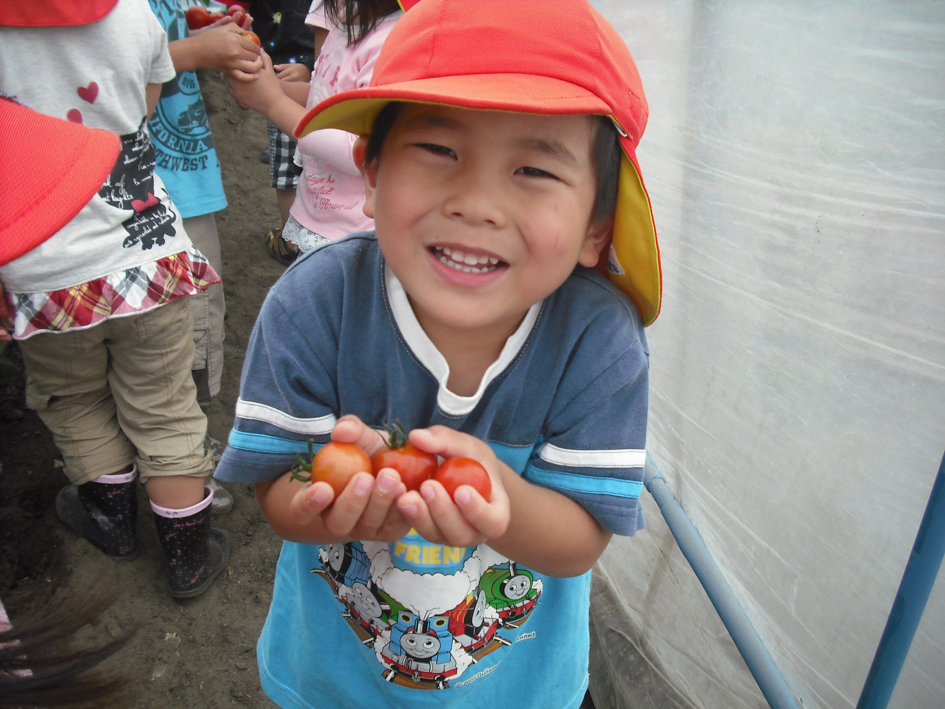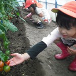 ミニトマト 6月3日(月) ぞう組さんが、ミニトマトの収穫に行ってきました。 大つぶのトマトが沢山できていましたよ。 手のひらに持ちきれないほどのトマトを持ち帰り、クラスのみんなで仲良く食べました。甘くて美味しかったよ~。